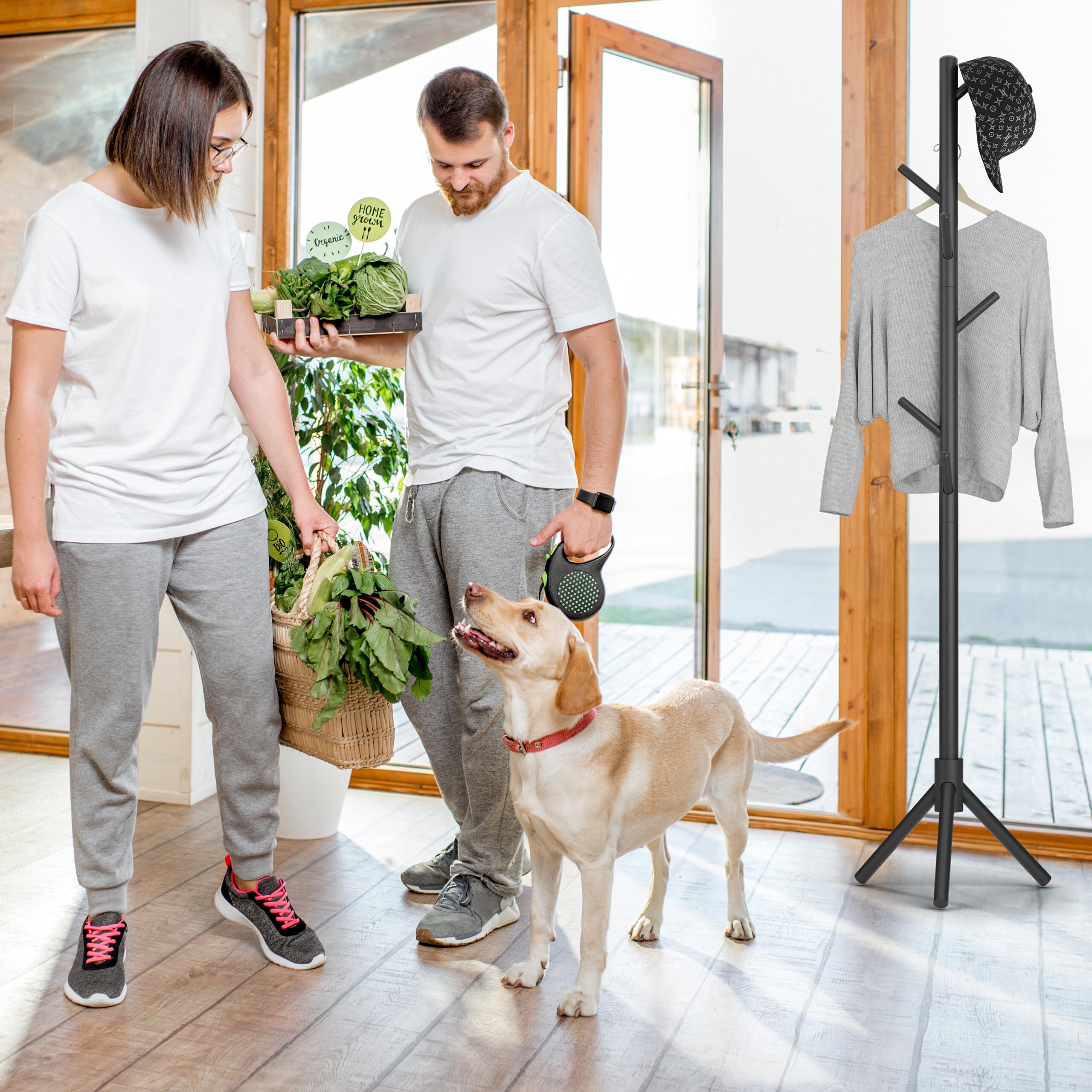 Relaxdays Garderobenständer Baumform - 8 Haken Aus Kautschukholz Schwarz