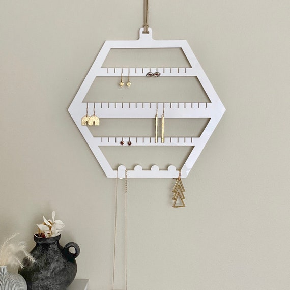 GemeShou Ohrring Display Ständer Hexagon - Acryl Organizer Für Stecker-Ohrringe (28 Löcher, Weiß)