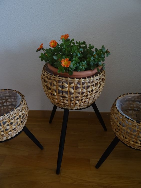 Geflochtener Blumenständer Holz - Pflanzkorb Mit Beinen Für Innen & Außen