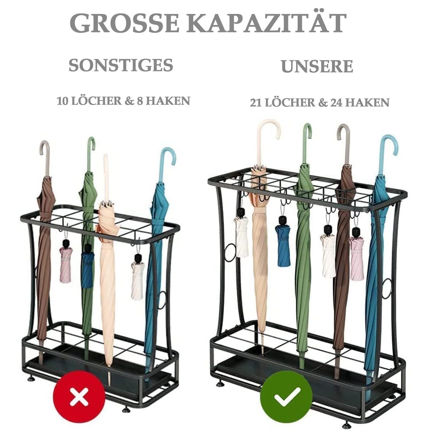 WZYTEU Schirmständer Mit Abtropfschale | Für Lange & Kurze Regenschirme | 28x22x9cm In Weiß