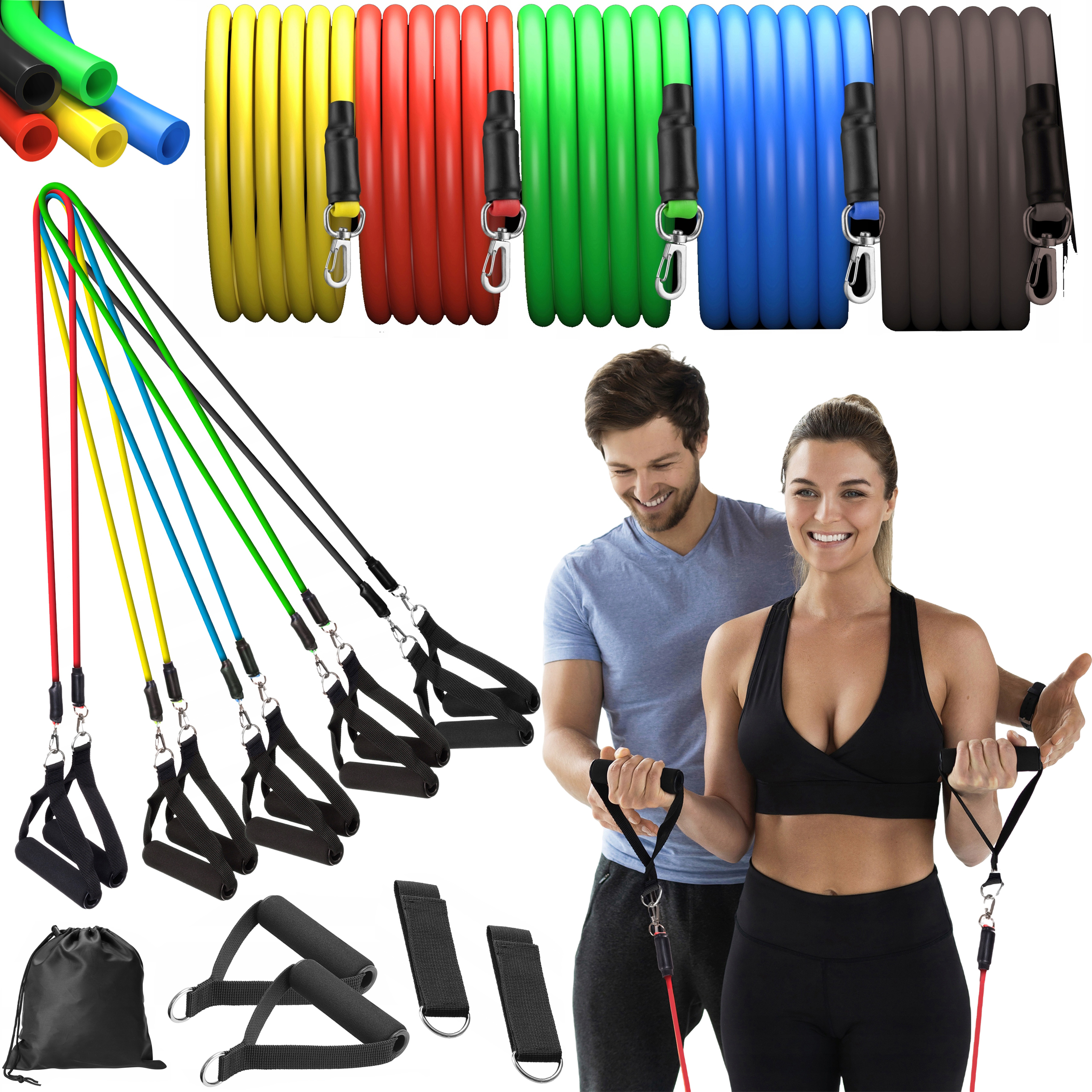 2 Widerstandsbänder Mit Griffen - Fitnessbänder Für Krafttraining & Yoga