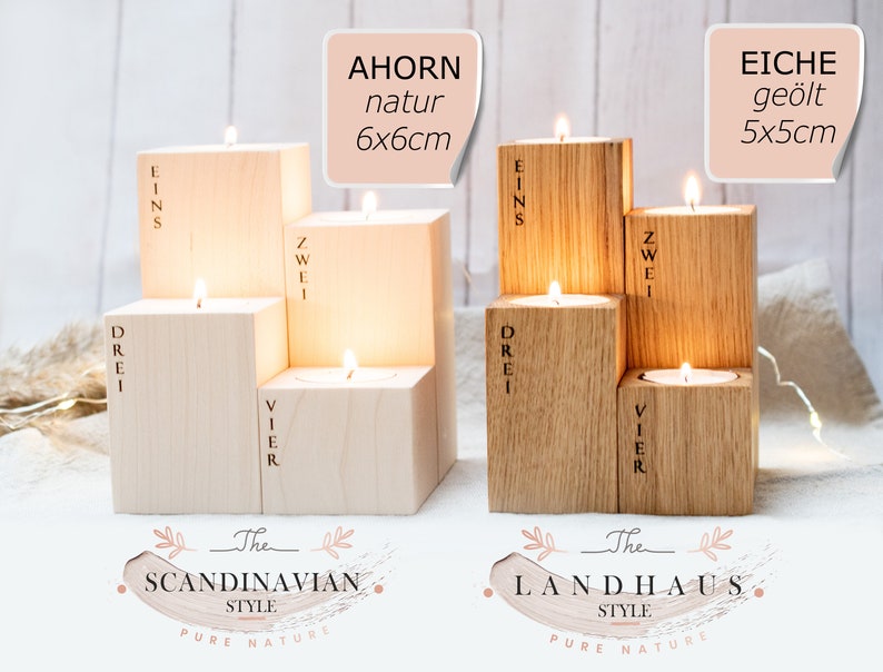 Romadedi Adventskranz Kerzenhalter Set - 4 Metallständer Mit Holz Zahlen | DIY Adventsdeko Für Weihnachten
