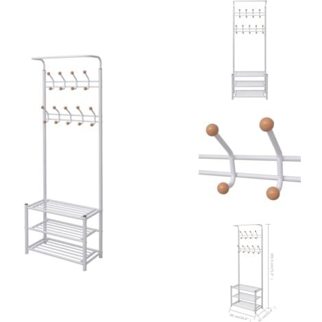 Moimhear Garderobenständer Mit Schuhbank | 120x40x191cm Flurorganizer Mit 6 Haken (Weiß)