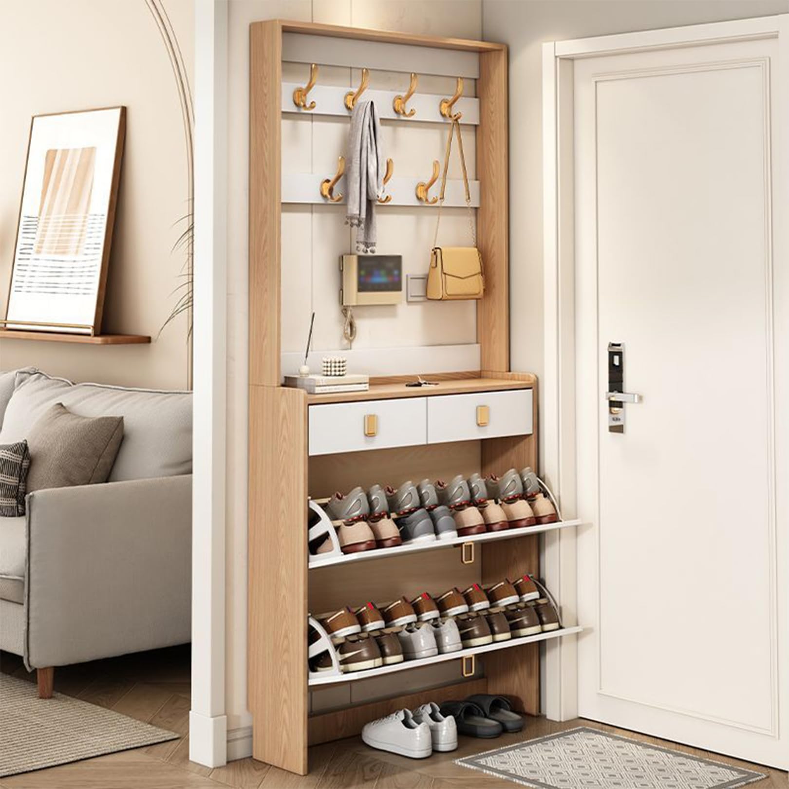 Yinghesheng Garderobenständer Mit Schuhregal - Platzsparend Für Flur & Wohnzimmer