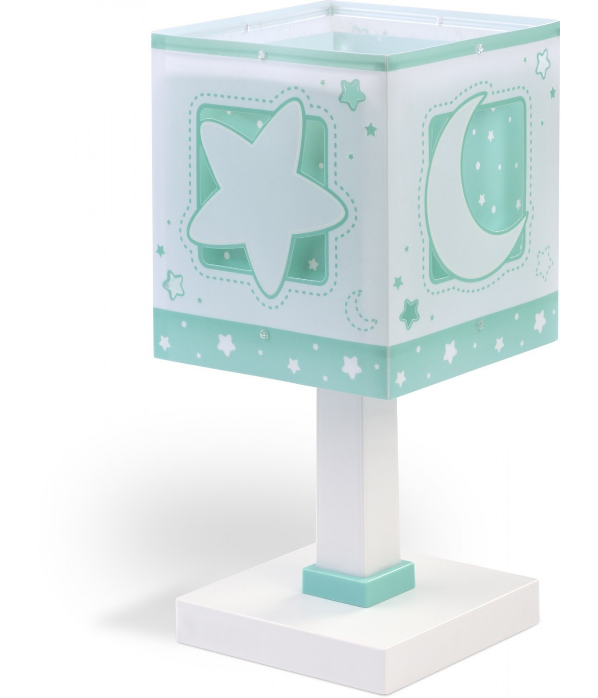Dalber Kinder Tischlampe Mond & Sterne - Grün Mit E14 Fassung | Nachtlicht Fürs Kinderzimmer