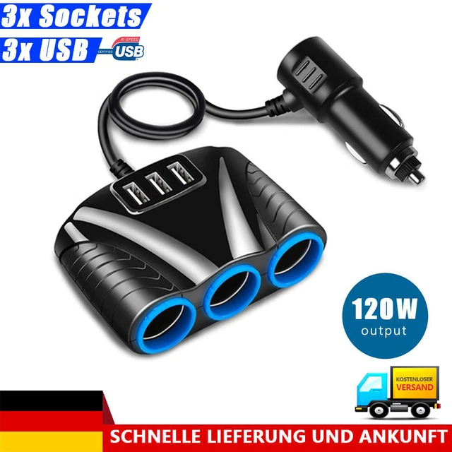 Im Auto immer zu wenig Steckdosen? Der Beiyan 3-fach Zigarettenanzünder Verteiler schafft Abhilfe! Drei 12V/24V Steckdosen plus zwei USB-Ports mit bis zu 3.1A - damit kannst du gleichzeitig Navi, DashCam, Sitzheizung und Handys laden. Volle Power mit 120W, also auch für anspruchsvolle Geräte wie Kühlboxen geeignet. Sicherheit geht vor: Mit Überlastschutz und austauschbarer Sicherung, damit dein Auto und deine Geräte safe bleiben. Einfach in den Zigarettenanzünder stecken, fertig! Passt in die meisten Autos, ob PKW, SUV oder Kleintransporter. Die USB-Ports laden intelligent, erkennen deine Geräte und geben den optimalen Strom. Praktische LED-Anzeige zeigt an, ob's läuft. Einfach unverzichtbar für lange Fahrten, Roadtrips oder den täglichen Gebrauch. Macht das Auto endlich multitasking-fähig! Einfach gut!