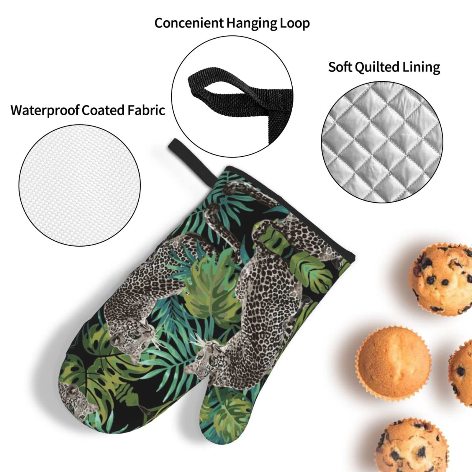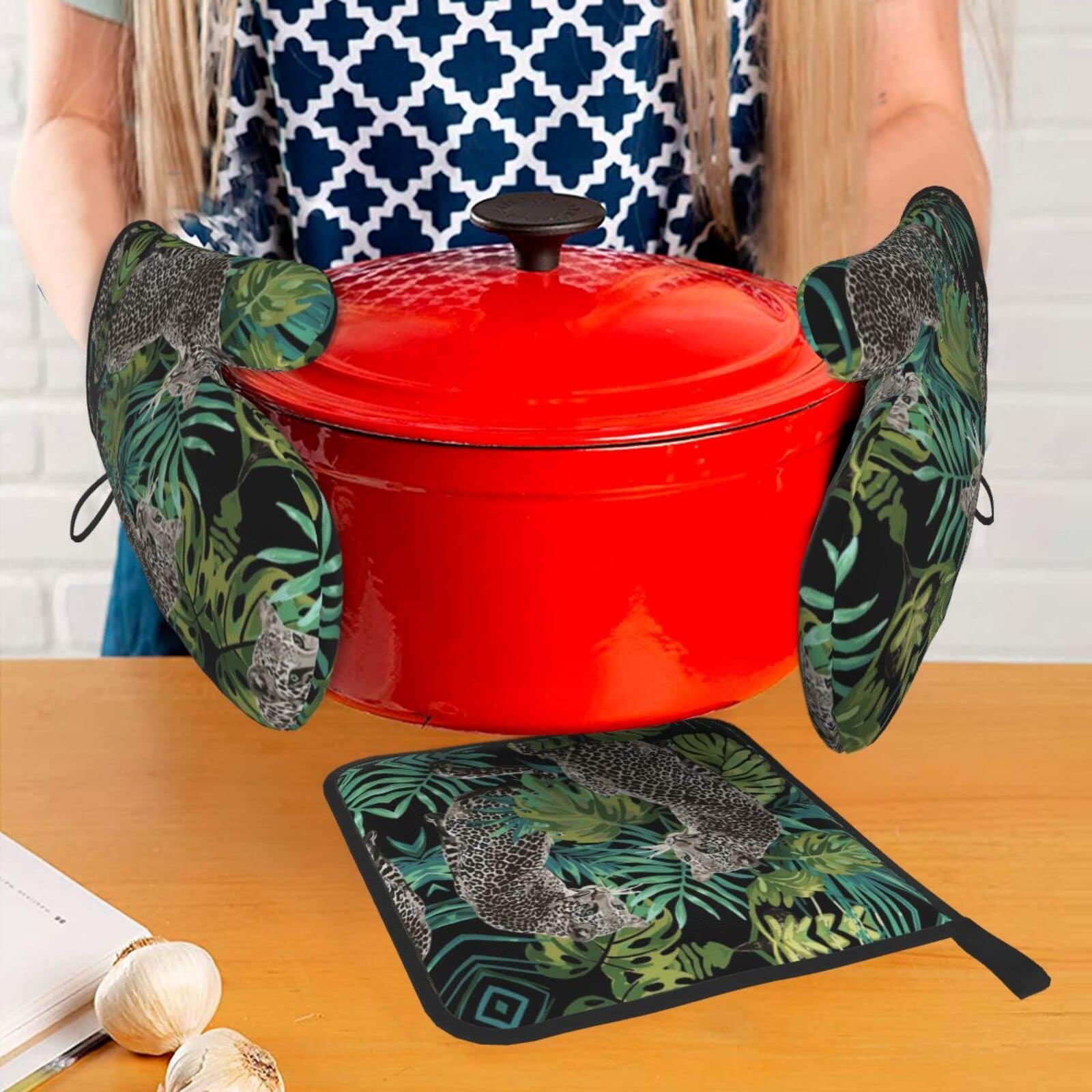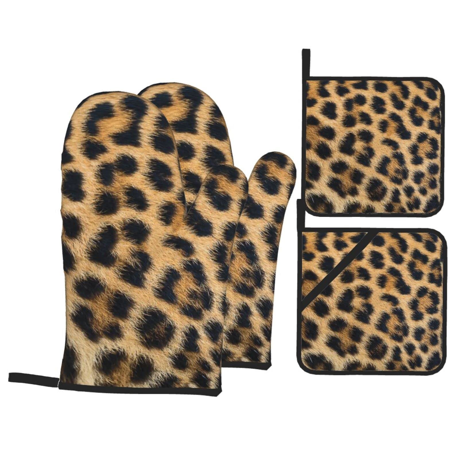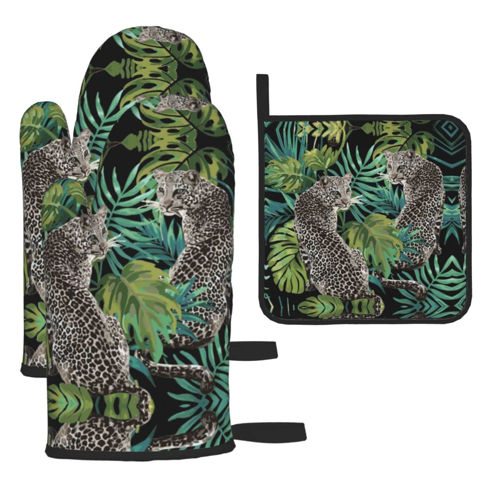 Ofenhandschuhe & Topflappen Set - Hitzebeständig Mit Leopardenmuster, 2-teilig In Schwarz
