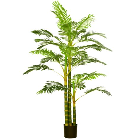 HOMCOM Künstliche Palme 120cm - UV-beständige Kunstpflanze Im Topf Für Innen & Außen