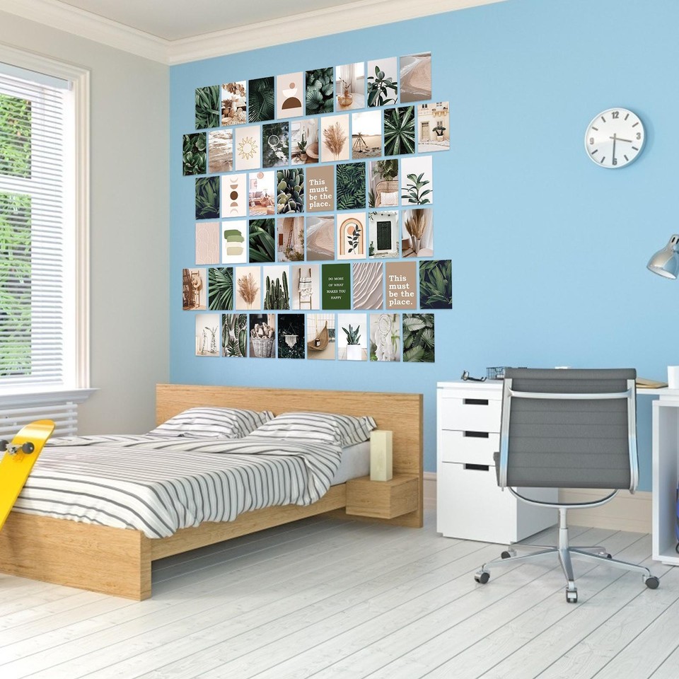 Diese grüne Wand-Collage ist voll im Trend! 54 Teile mit botanischen Motiven - alles in schönen Grüntönen. Jedes Poster ist 10,2x15,2 cm groß. Gedruckt auf hochwertigem, dickem Karton der nicht reißt oder verblasst. Kommt in ner eigenen Collage-Box an - nichts knittert oder beult sich. Perfekt um leere Wände aufzuwerten oder verschiedene Raumbereiche zu gestalten. Ob Schlafzimmer, Wohnheim oder Partyraum - sieht überall toll aus. Macht deine Wände zu nem echten Hingucker der deine Persönlichkeit zeigt. Auch als Geschenk für Teenager und Mädchen super - zu Geburtstag, Weihnachten oder Abschluss. Einfach drauf los kleben und dein eigenes Meisterwerk schaffen!