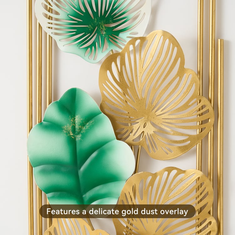 Tissting Metall Wanddeko Grün & Gold - 51x21cm 3D Blumen Skulptur