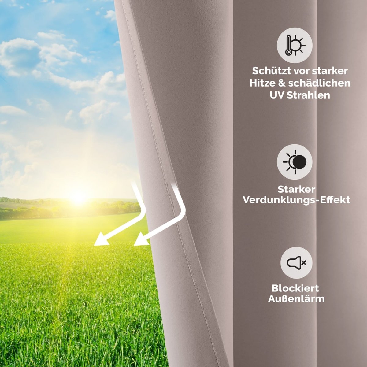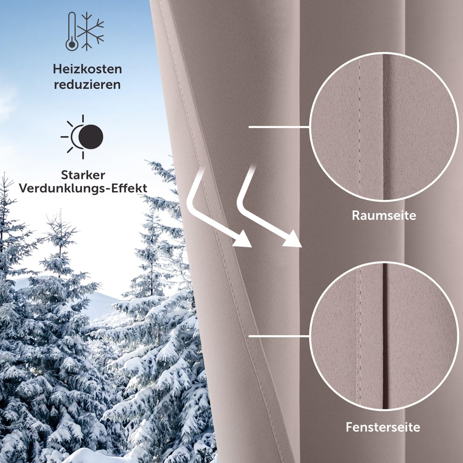 2er Set Verdunklungsvorhänge 145x140 Cm - Blickdicht & Wärmedämmend In Taupe