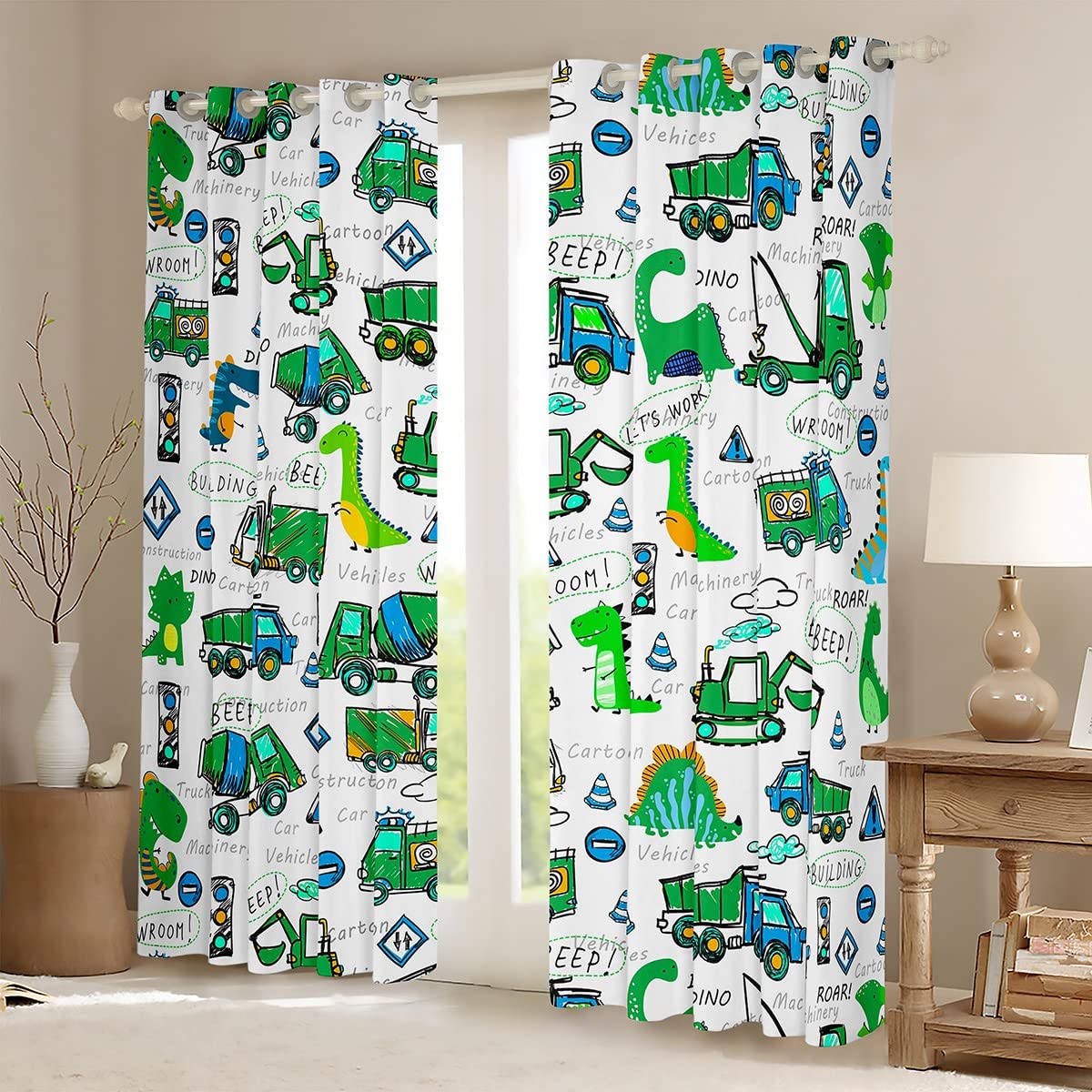 Dino-Vorhänge 2er Set - Verdunkelungsgardinen Mit Dinosaurier-Muster - Für Kinderzimmer & Wohnzimmer, 260x140cm