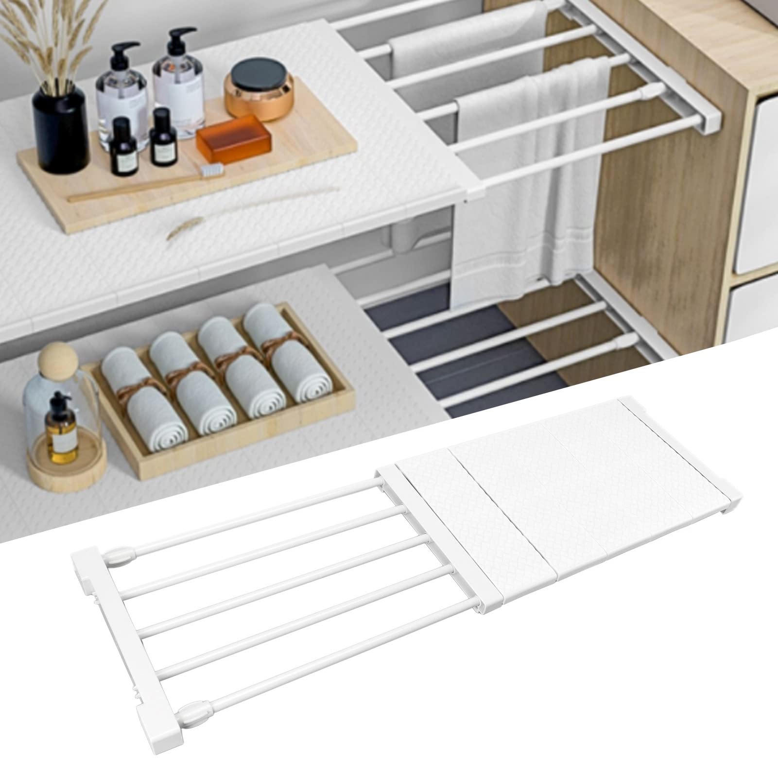 Schluss mit Chaos im Schrank! Dieser verstellbare Einlegeboden (38-60cm Länge, 24cm Breite) schafft sofort Ordnung. Einfach einklemmen - ohne Bohren, ohne Schrauben. Hält bis zu 20kg und besteht aus stabilem Edelstahl und ABS-Kunststoff. Perfekt für Kleiderschränke, aber auch in Küche oder Bad einsetzbar. Mit abnehmbarer Klappe für kleine Gegenstände und Aufhängevorrichtung für Schals oder Gürtel. Endlich alles an seinem Platz - und das in Sekunden montiert!