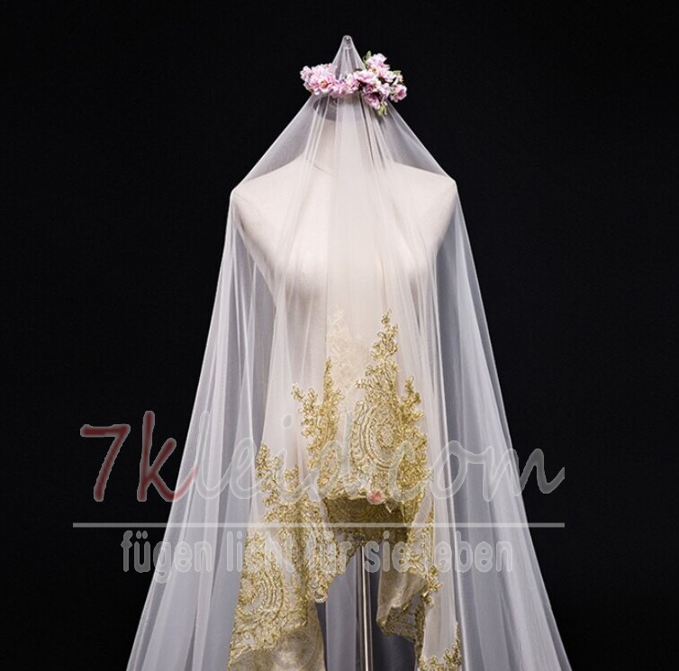 AiberLisha Brautschleier Kapellenlänge - Mit Metallkamm Und Blumenspitze
