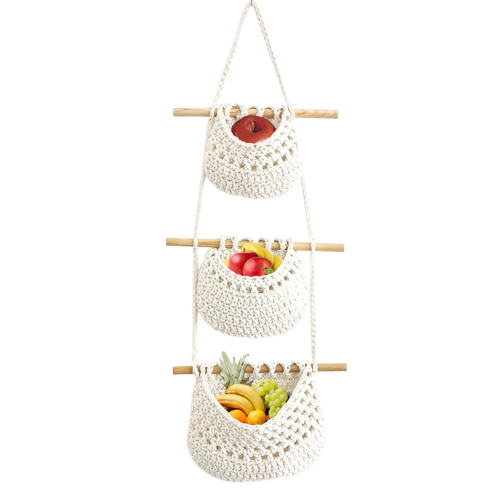 LWZko Hängekorb Küche - 2-etagiger Obstkorb Aus Baumwollseil Im Boho-Stil