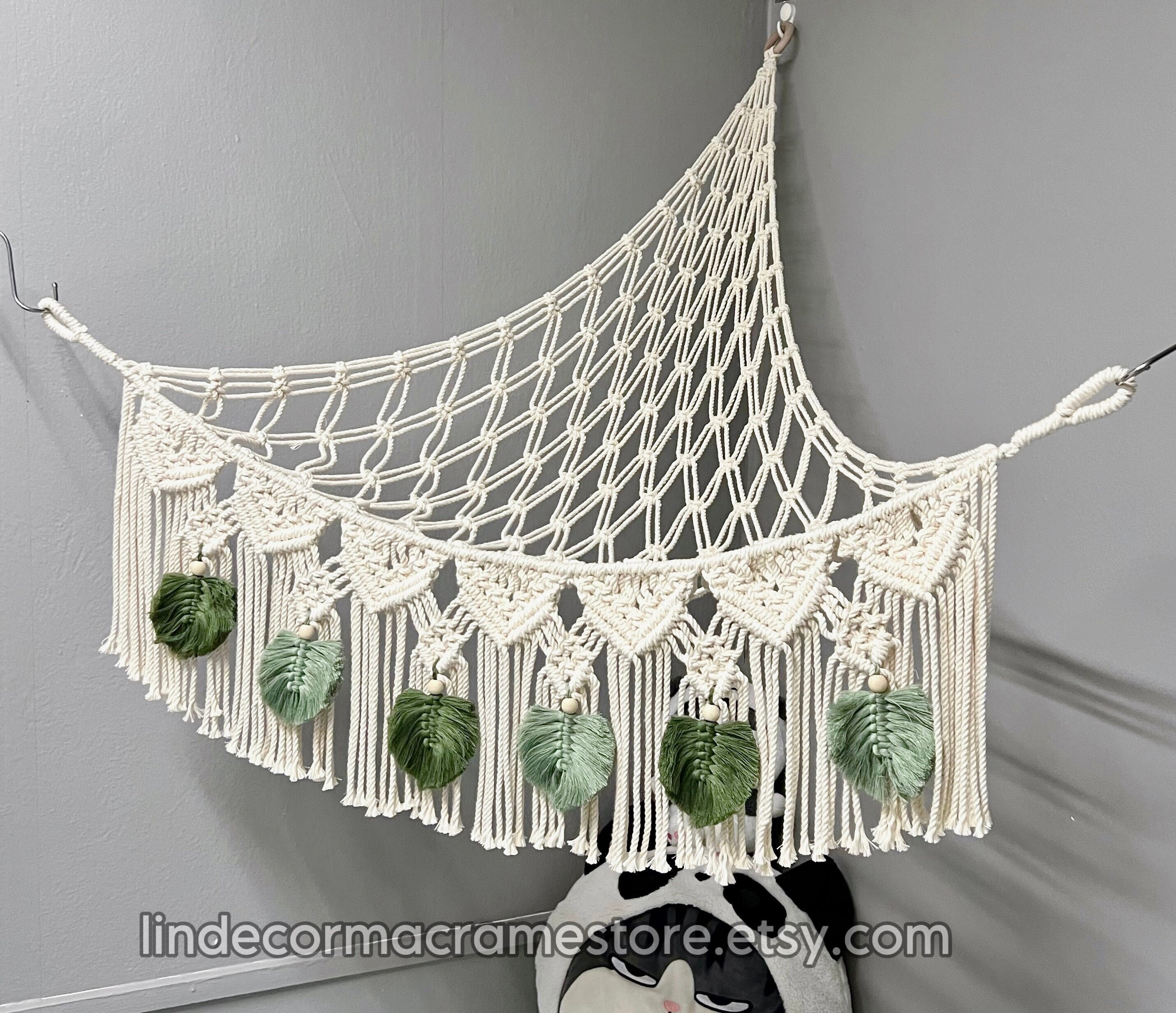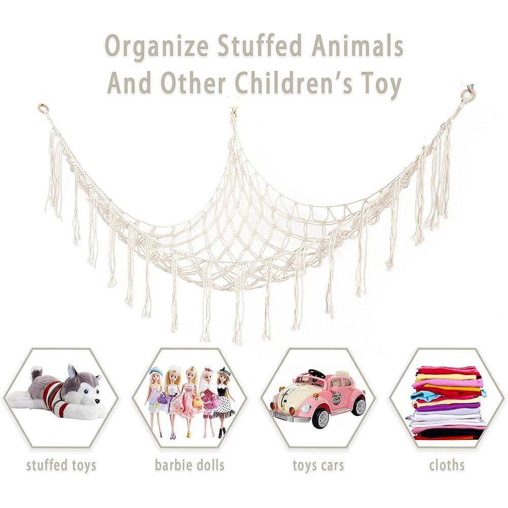 Opilroyn Stofftier-Hängematte Aus Makramee - Spielzeug-Aufbewahrungsnetz 100x60cm Für Kinderzimmer
