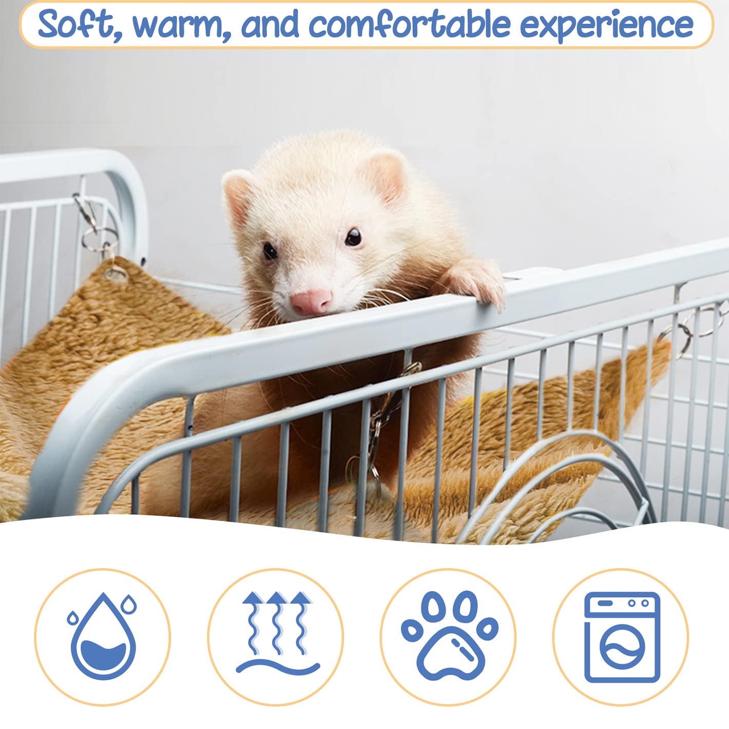 Dein Hamster wird's lieben! Diese supergemütliche Hängematte von Jongyumo bietet deinem kleinen Nager den perfekten Schlaf- und Ruheplatz. Aus weicher, atmungsaktiver Baumwolle gefertigt, sorgt sie für optimale Temperaturregulation - im Sommer nicht zu heiß, im Winter nicht zu kalt. Die rutschfesten Haken halten sicher an den Käfiggittern, selbst bei den wildesten Kletteraktionen. Abnehmbar und waschbar für einfache Reinigung. Mit verdicktem Schaumstoff und abgerundeten Ecken für maximale Sicherheit. Perfekt für Hamster, Eichhörnchen, Chinchillas und andere kleine Nager. Mach deinem Tierchen eine Freude mit diesem kuscheligen Rückzugsort!