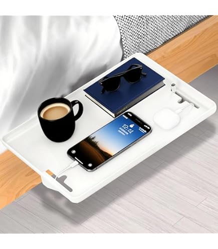 Boah, dieser Aufhänge-Nachttisch von FuxFuis ist genial für alle mit wenig Platz! Einfach an die Bettkante, Sofalehne oder sogar ans Fensterbrett klemmen - ohne Bohren oder Schrauben. Mit 32x23,3cm bietet er genug Platz für Handy, Buch, Brille und Getränk. Das coole Feature: Integriertes Kabelmanagement mit seitlichen Öffnungen, damit du dein Handy laden kannst, ohne dass Kabel wild rumhängen. Aus stabilem ABS-Kunststoff und trägt bis zu 580g - also alles, was du nachts so brauchst. Perfekt für Studentenwohnheime, Hochbetten oder kleine Wohnungen, wo jeder Zentimeter zählt. Einfach anklemmen, festdrücken und schon hast du deine Ablagefläche. Macht sich auch super neben dem Fernsehersessel oder am Schreibtisch. Nie wieder mühselig aus dem Bett klettern müssen, weil was vergessen wurde - alles ist griffbereit! Damit wird dein Schlafzimmer sofort organiserter und praktischer.