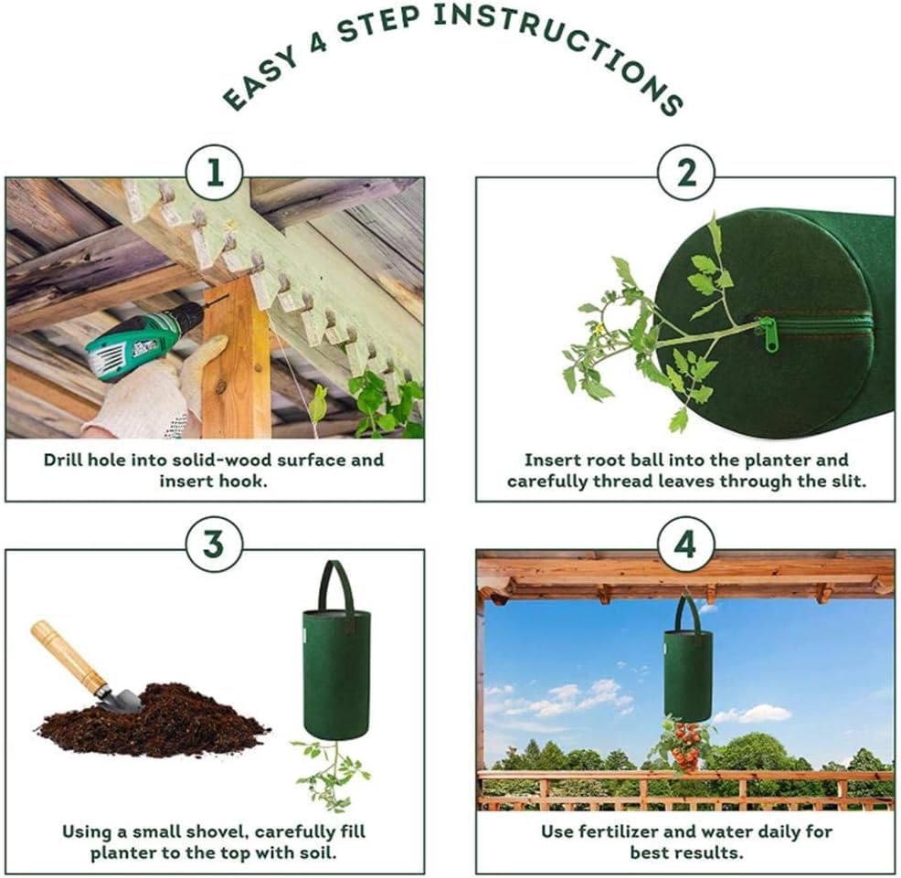 Super Idee für kleine Gärten oder Balkone! Diese 2 hängenden Pflanzsäcke sind perfekt für Erdbeeren, Tomaten, Kräuter und anderes Gemüse. Jeder Sack hat 8 Pflanzlöcher - da passt richtig was rein! Aus robustem PE-Material, atmungsaktiv und mit guter Drainage. Mit praktischen Griffen zum Aufhängen an Zäunen, Wänden oder Balkongeländern. Maße: 60x25cm, in Dunkelgrün. Spart mega Platz und sieht auch noch toll aus! Einfach die Pflanzen durch die Löcher stecken, mit Erde füllen und aufhängen. Perfekt für Stadtgärtner oder alle mit wenig Platz. Macht aus jeder Ecke einen kleinen Garten!