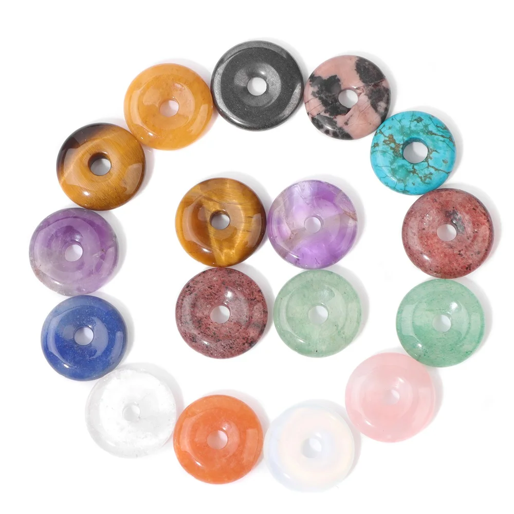 VIXDA 10er Set Natürliche Stein Donut Anhänger 15mm - Aventurin Amethyst Quarz | Mit Loch Für Schmuckherstellung