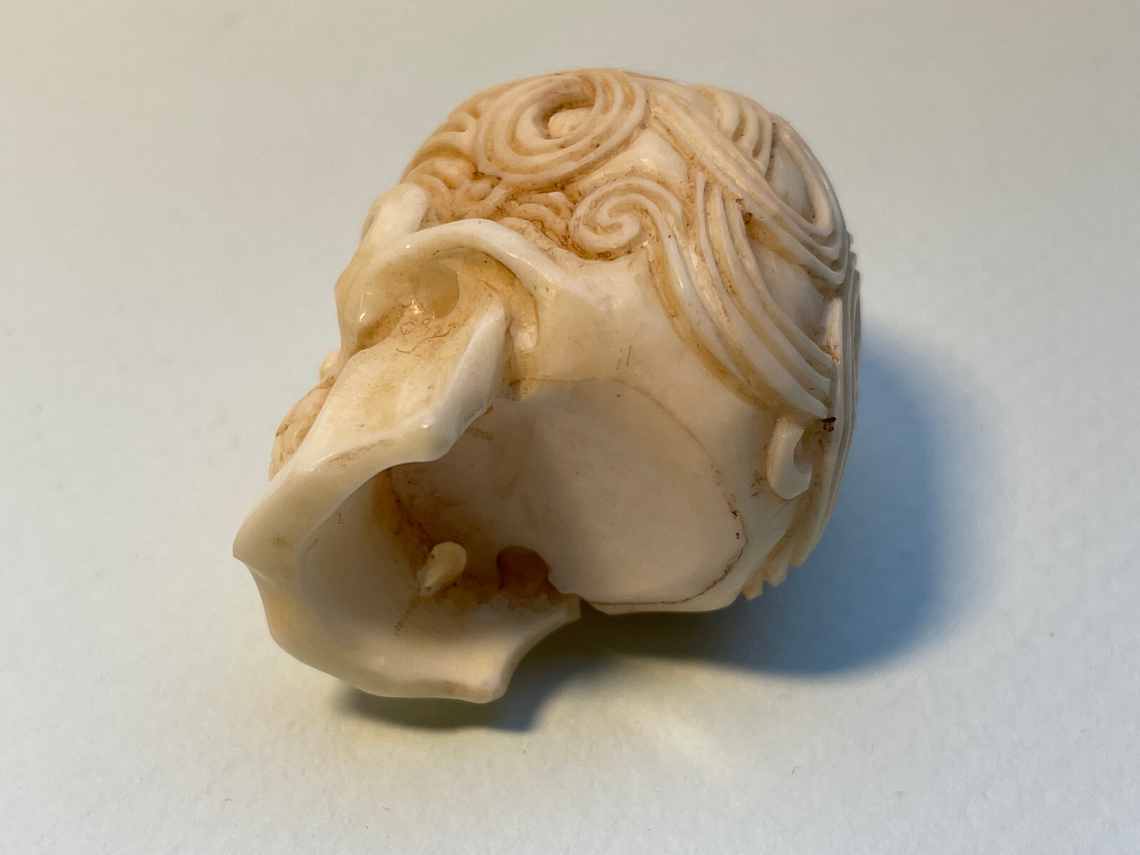 Ein absolutes Unikat! Dieser fein handgeschnitzte Totenkopf aus naturbelassenem weißem Hirschhorn ist etwas ganz Besonderes. Jedes Stück ist einzigartig - genau wie im echten Leben.