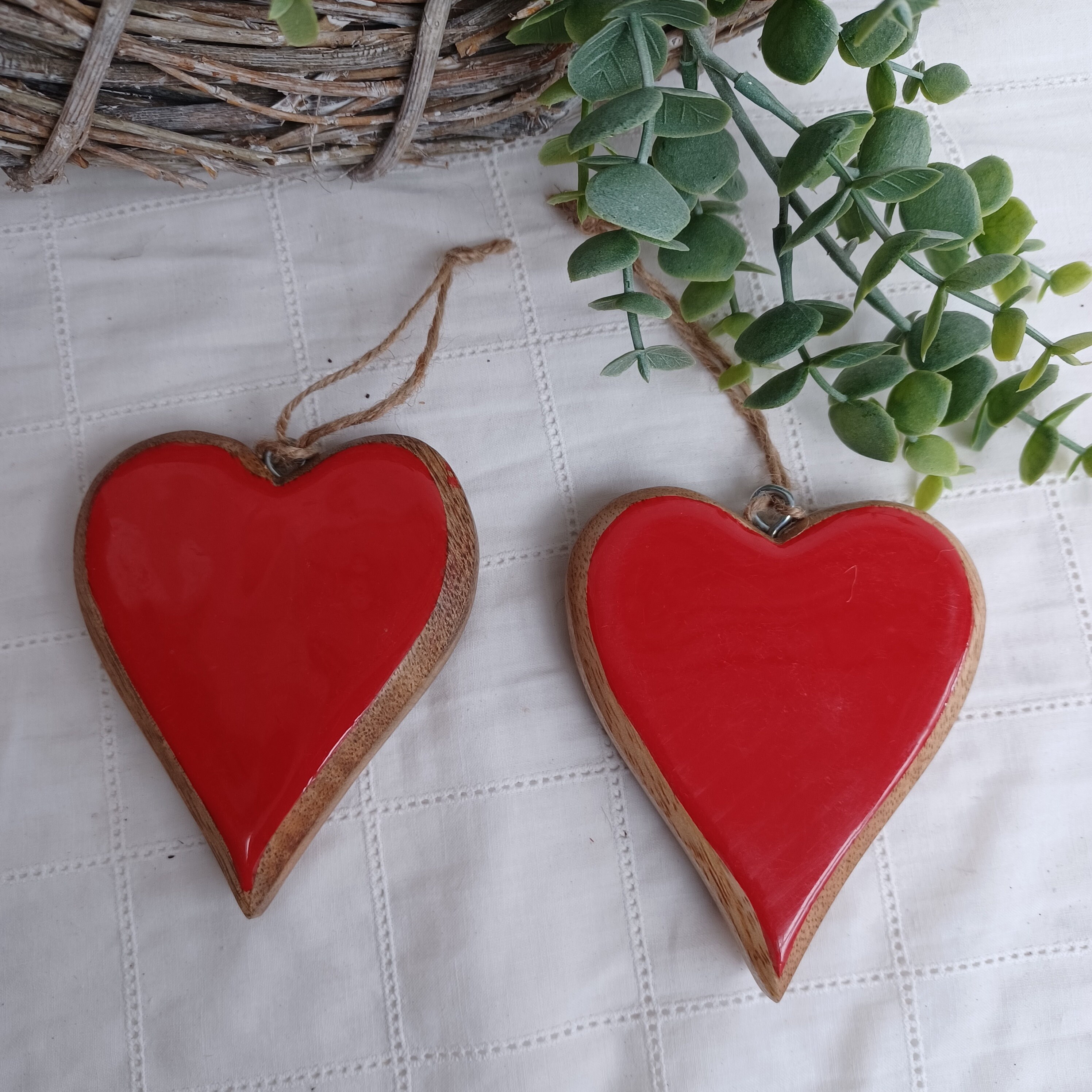 Auptiz 2er Set Herz Deko Anhänger Aus Holz - Doppelherz Holzdeko Für Fenster & Wohnung