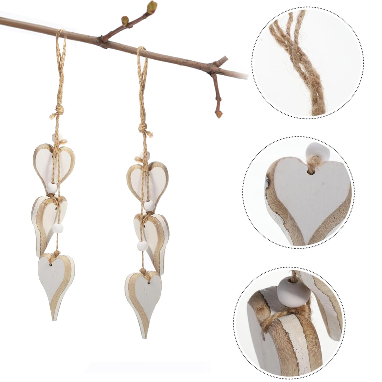 Wow, schau dir diese niedlichen Herz-Anhänger aus Holz an! Das Auptiz 2er Set besteht aus zwei wunderschön gestalteten Doppelherzen in natürlichen Holz- und Weißtönen, die sich perfekt in jede Einrichtung fügen. Egal ob im Wohnzimmer, Schlafzimmer oder am Fenster - diese Deko-Herzen verbreiten sofort eine gemütliche und romantische Atmosphäre. Die Herzen sind mit Juteschnur und Holzperlen ausgestattet, sodass du sie ganz einfach überall aufhängen kannst. Super praktisch und dabei total stylisch! Perfekt als Geschenk für Valentinstag, Hochzeit, Geburtstag oder einfach nur so. Die Herzen sind aus massivem, hochwertigem Holz gefertigt und überzeugen durch ihre stabile Qualität und die glatten Kanten. Ein echter Hingucker, der jedes Zuhause verschönert!