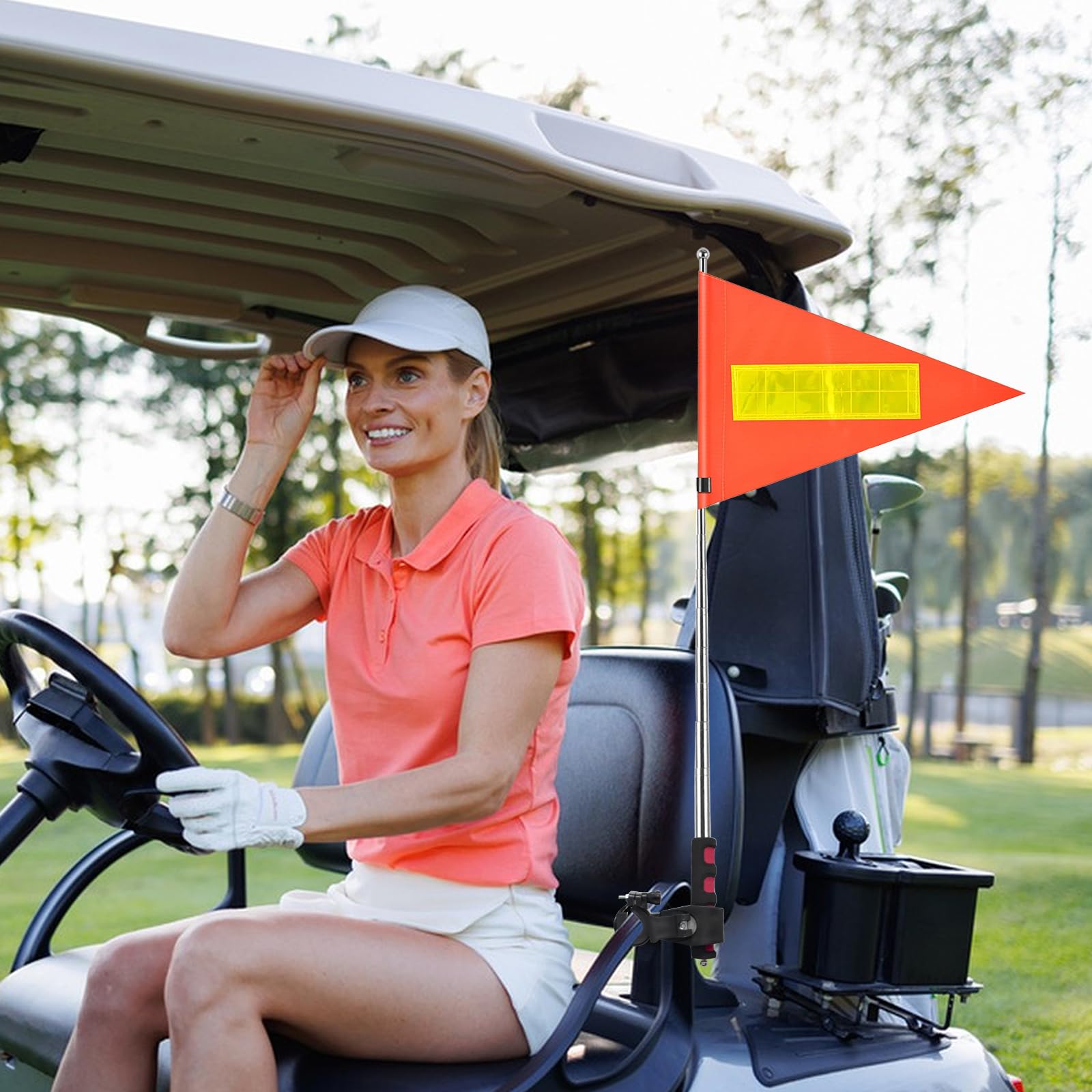 Sicherheit geht vor! Diese knallorange Fahne macht dich im Verkehr unmöglich zu übersehen. Total praktisch: ausziehbarer Mast von ca. 160cm Länge, Fahne misst 21x30cm. Aus reißfestem PVC-Material, komplett wasserdicht. Passt an Fahrräder, Rollstühle, Golfwagen - einfach alles mit Rohrdurchmesser 1,5-2,5cm. Reflektierend für Dunkelheit, UV-beständig für Sonne. Einfach zusammenklappen und transportieren. Für mehr Sicherheit bei jedem Ausflug!