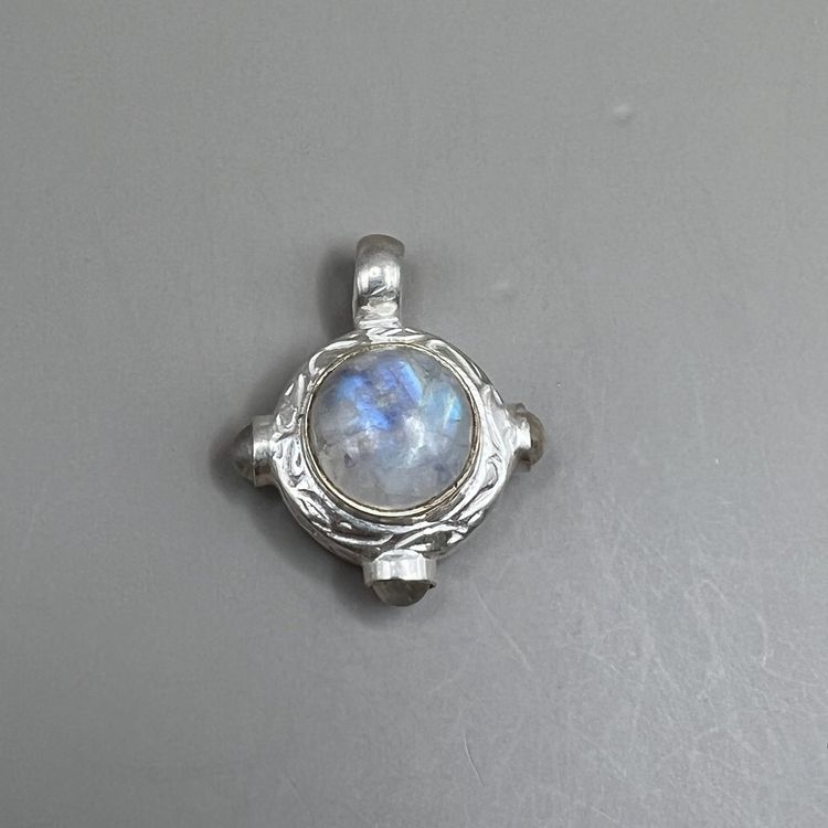 Kreiere deinen eigenen Schmuck! Dieser wunderschöne Mondstein-Anhänger in Kleeblattform ist perfekt für DIY-Projekte. Aus 925er Silber, goldfarben beschichtet und mit bläulich schimmerndem Mondstein.
