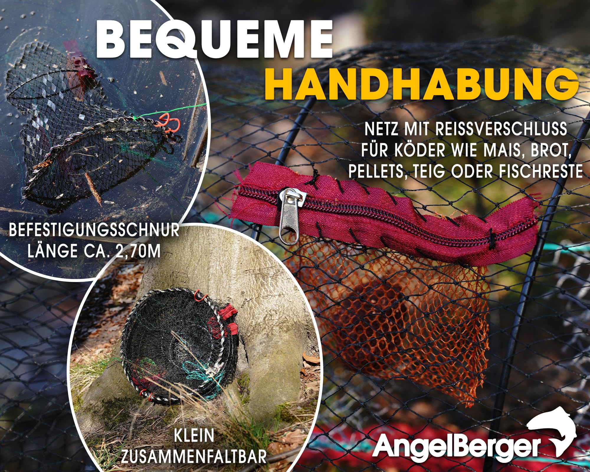 Kescher & Fischreuse Im Set - Faltbarer Köderfisch-Fänger Mit Fluchtschutz Für Hummer, Krabben & Kleine Fische - Outdoor Angelzubehör