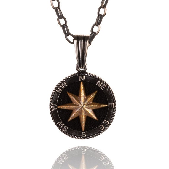 JVillion Kompass Anhänger Silber - Wasserdichter Streetwear Schmuck Für Männer