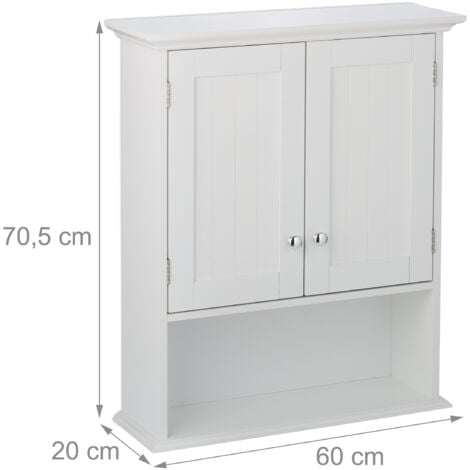 Relaxdays Hängeschrank Bad 50x30cm - Landhausstil Weiß Mit Magnetverschluss & 2 Fächern