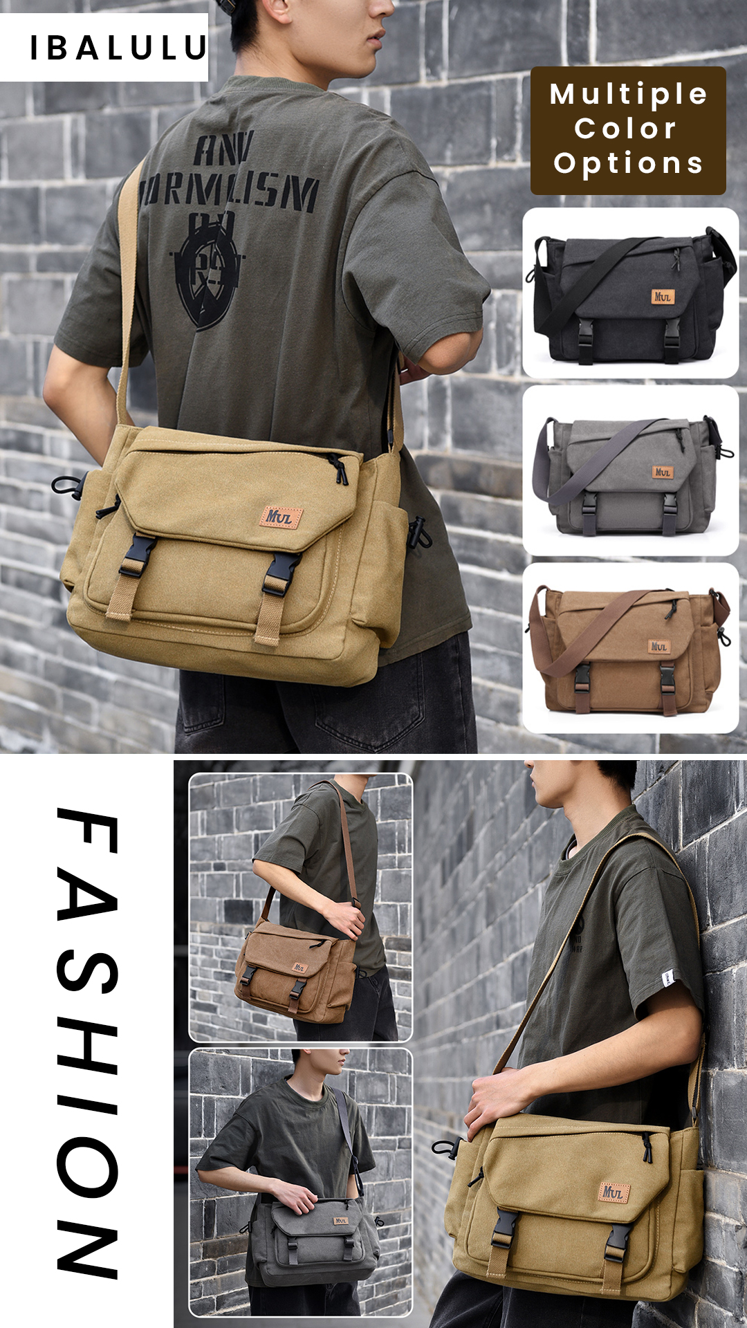 Ibalulu Umhängetasche Herren - PU Leder, 26x19x7cm, Wasserdicht, Mehrere Fächer