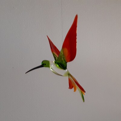 Wunderschöner Glas-Kolibri zum Aufhängen! Handgefertigt in traditioneller Handarbeit - jedes Stück ein Unikat. In transparenten Braun-, Grün- und Blautönen - schimmert wundervoll im Licht. Mit ca. 10cm Flügelspannweite - ein eleganter Blickfang für jedes Zuhause. Perfekt als Fensterdekoration - wirft bezaubernde Lichtreflexe. Auch für Wintergarten, Balkon oder als besonderes Deko-Element. Aus hochwertigem Glas - vorsichtig behandeln da bruchempfindlich. Bringt Natur und Leichtigkeit in deine vier Wände. Ein ideales Geschenk für Vogelliebhaber und Deko-Fans. Schafft eine gemütliche, natürliche Atmosphäre. Einfach aufhängen und an den schönen Farbspielen erfreuen!