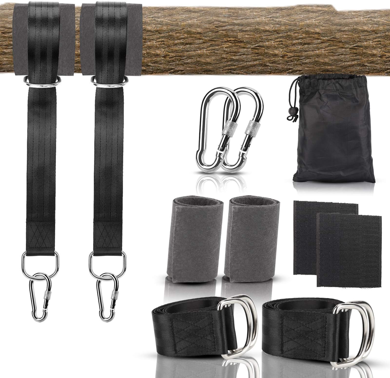 Einfach um Äste, Balken oder Spielgeräte wickeln, Karabiner einhaken - fertig! Die Gurte verdrehen sich nicht und sorgen für geraden Halt. Perfekt für Schaukeln, Hängematten oder Hängesessel.