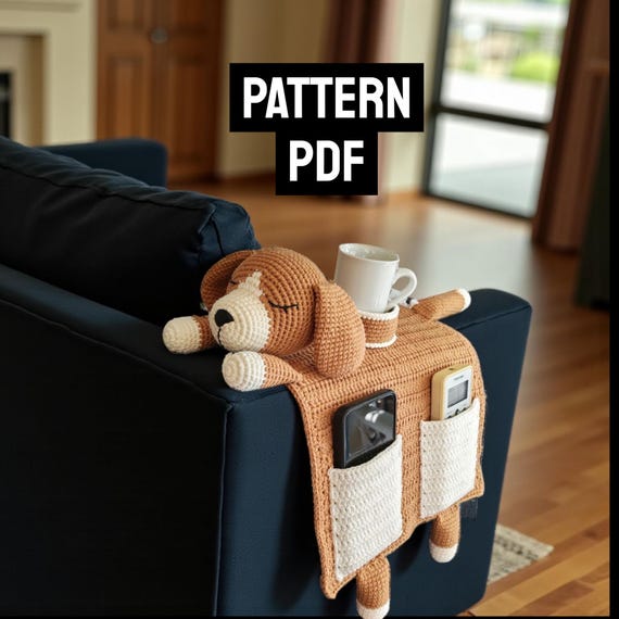 Häkeln Sofa-Organizer Mit Getränkehalter - Hunde Design Für Fernbedienungen & Snacks