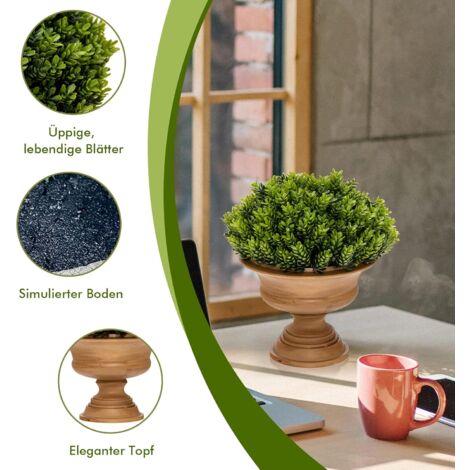 Einfach den Erdspieß (21cm lang) in die Erde oder einen Blumentopf stecken - ohne Werkzeug und Montage. Der Baum hat einen Durchmesser von 38cm und wiegt insgesamt 2kg. Die verlaufend grünen Blätter und der naturgetreue Stamm sehen einfach klasse aus.