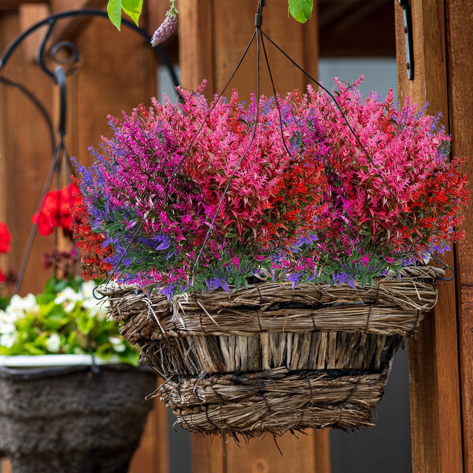 Blühende Balkone das ganze Jahr - ohne Gießen und Pflege! Diese 12 Bund künstliche Blumen in Rosarot sehen täuschend echt aus und halten jeder Witterung stand. UV-beständig, wasserfest und absolut pflegeleicht - einfach in den Blumenkasten stecken und fertig! Die Blüten sind aus hochwertigem Kunststoff und Stoff gemacht, riechen nicht unangenehm und behalten ihre intensive Farbe. Jeder Bund ist 30-35cm lang und sieht voll und natürlich aus. Perfekt für: Balkonkästen, Gärten, Terrassen, Haustür-Dekoration oder auch innen im Wohnzimmer. Selbst bei Regen und Wind bleiben sie schön - im Gegensatz zu echten Blumen welken sie nie! Wenn sie staubig werden, einfach mit Wasser abspülen. Wichtig: Beim Transport können sie etwas gedrückt sein - einfach in Form bringen, dann sehen sie wieder perfekt aus. Super Alternative wenn du keinen grünen Daumen hast oder wenig Zeit für Pflanzenpflege. Mach deinen Outdoor-Bereich zum echten Hingucker!