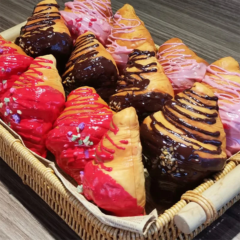Diese künstlichen Croissants sehen so echt aus, dass man direkt Hunger kriegt! Aber Achtung - sie sind nur zur Dekoration! Perfekt für alle, die ihre Vitrine oder ihren Laden aufhübschen wollen.\\n\\Jedes Croissant ist liebevoll aus hochwertigem PVC gefertigt und hat eine super realistische Textur. Sie fühlen sich fast wie echt an!\\n\\nMaße: 7,9x13cm - die perfekte Größe für verschiedene Dekorationszwecke.\\n\\nEinsatzmöglichkeiten:\\n- Bäckerei-Vitrinen\\n- Café-Dekoration\\n- Kinder-Spielküchen\\n- Fotografie-Requisten\\n- Geburtstags-Partys\\n- Weihnachts-Deko\\n\\nDie Croissants sind:\\n- Nicht verformbar\\n- Leicht zu reinigen\\n- Wiederverwendbar\\n- Absolute Hingucker\\n\\nSuper als Geschenk für Deko-Fans oder einfach um sich selbst eine Freude zu machen. Sieht nicht nur gut aus, sondern hält auch ewig!