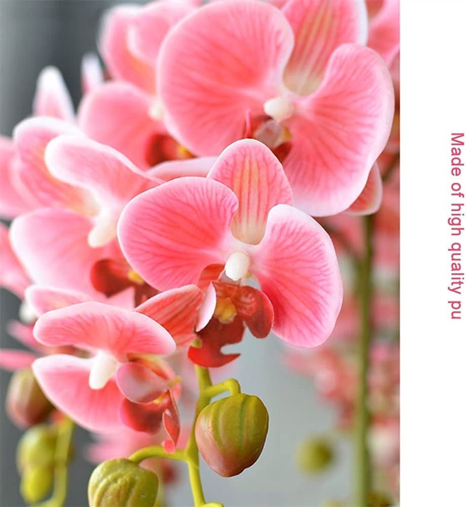 Wunderschöne künstliche Orchideen bringen Farbe in dein Zuhause! 4 Bündel mit je 7 Zweigen und vielen Blüten. Aus hochwertigem PE-Material, sieht täuschend echt aus. Mit echten Blattadern und Eisen-Draht in den Stielen für beliebige Formung. Maße 24x33cm, perfekt für Vasen. Ideal für Wohnzimmer, Büro, Hotel oder Feiern. Kein Gießen nötig - einfach mit feuchtem Tuch abwischen. Als Tischdeko, für Blumenkörbe oder Bastelprojekte. Ein tolles Geschenk für Blumenliebhaber. Hol dir den Frühling ins Haus - das ganze Jahr über!