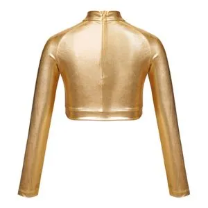 KQIVAM Mädchen Crop Top - Glänzendes Metallic Shirt Für Party & Tanz | Y2K Style