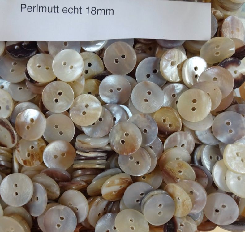 Verpasse deinen Nähprojekten den besonderen Glanz! Diese 6 echten Perlmutt-Knöpfe im klassischen 2-Loch-Design bezaubern mit ihrem natürlichen Regenbogen-Schimmer. Jeder Knopf ist ein Unikat - mal mehr weiß, mal cremefarben, immer mit diesem wunderschönen Schimmer, der das Licht ganz natürlich einfängt. Hergestellt aus hochwertigem Goldfish-Perlmutt in einer etwas festeren Stärke für extra Langlebigkeit. Mit 15mm Durchmesser perfekt für Blusen, Cardigans oder auch Jacken. Da die Knöpfe in Europa gefertigt werden, kannst du dir sicher sein: Hier stimmt einfach die Qualität! Perlmutt-Knöpfe sind zeitlos schön und passen zu so vielen Styles - ob elegant oder lässig. Ein Set enthält 6 Knöpfe, genug für ein ganzes Projekt plus Ersatz. Einfach einnähen und staunen, wie professionell deine Kreation aussieht! Die flache, teils leicht gewellte Form liegt angenehm auf der Kleidung auf. Echte Perlmutt-Knöpfe - weil Details den Unterschied machen!