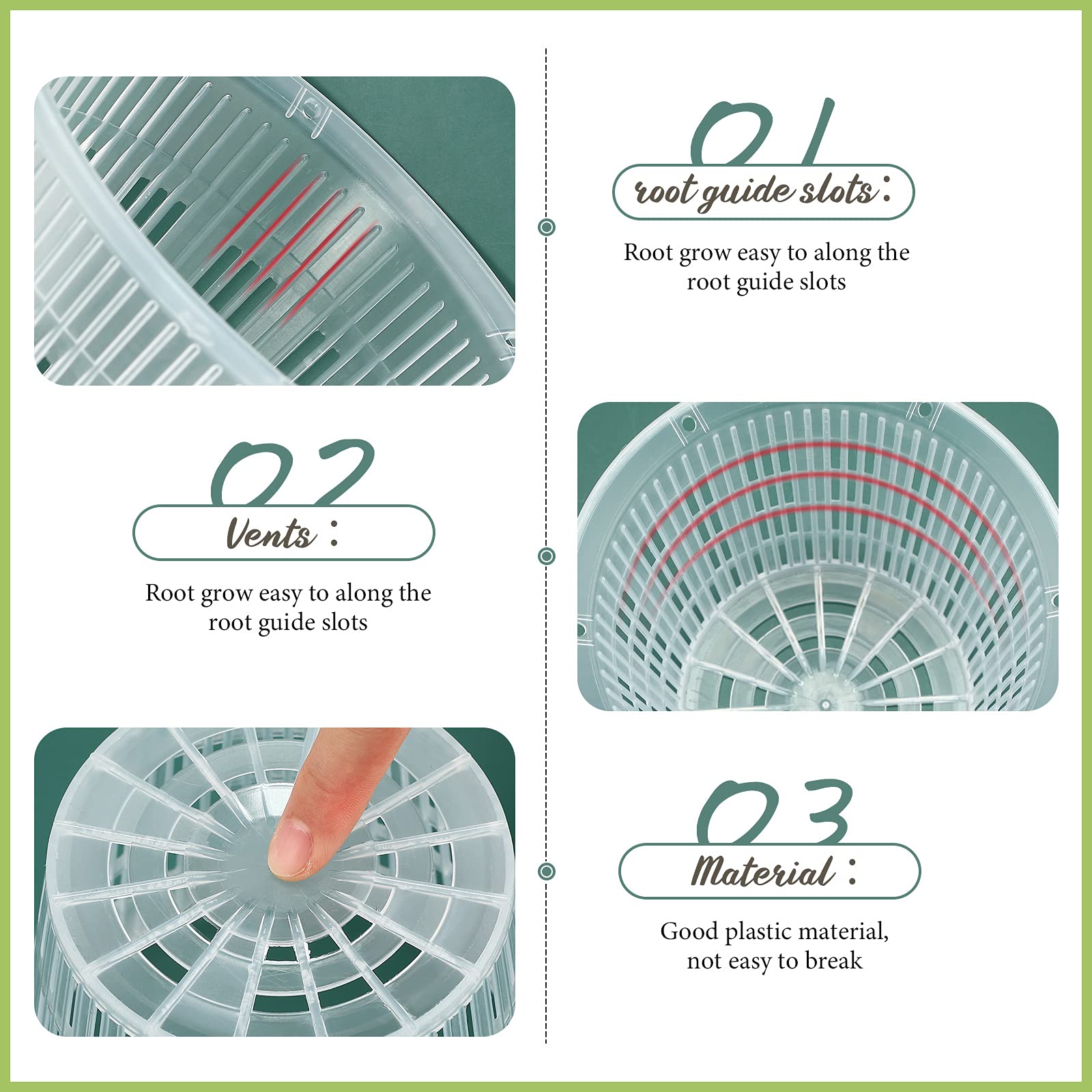 Deine Orchideen verdienen die beste Pflege! Mit diesen transparenten Töpfen siehst du immer genau, wie es den Wurzeln geht - super praktisch, um rechtzeitig zu gießen! Die Töpfe haben viele Schlitze und Löcher, damit das Wasser optimal ablaufen kann und die Wurzeln genug Luft bekommen. Jeder Topf kommt mit einem passenden Untersetzer, damit deine Möbel und Fensterbänke sicher bleiben. Hergestellt aus stabilem Kunststoff mit UV-Schutz, halten die Töpfe ewig und bleichen nicht aus. Im Set sind 4 Töpfe mit 4 Untersetzern in verschiedenen Größen von 12,7 cm bis 17,8 cm Durchmesser - also für fast jede Orchidee die richtige Größe! Ob auf der Terrasse, dem Balkon oder in der Wohnung - diese Töpfe machen überall eine gute Figur. Sie können alleine stehen oder als Innentopf in dekorative Übertöpfe gestellt werden. So haben deine Orchideen immer perfekte Bedingungen und du hast lange Freude an den schönen Pflanzen!
