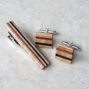 Stylish auftreten war noch nie so einfach! Dieses Set von Flongo mit Manschettenknöpfen und Krawattenklammer aus Holz und Metall verleiht jedem Outfit sofort mehr Charakter. Die runden Manschettenknöpfe mit 1,75cm Durchmesser sitzen sicher am Hemdsärmel, während die 5,7cm lange Krawattenklammer deine Krawatte zuverlässig an Ort und Stelle hält. Die Kombination aus natürlicher Holzmaserung und glänzendem Metall sieht einfach klasse aus und setzt tolle Akzente. Ob im Business-Meeting, auf der Hochzeit oder beim besonderen Abendessen - mit diesen Accessoires machst du immer eine gute Figur. Das warme Holzdesign wirkt persönlicher und einzigartiger als langweilige Standard-Modelle. In der eleganten Geschenkbox verpackt, ist das Set auch das perfekte Geschenk für deinen Vater, Partner oder Kollegen. Zu jedem Anzug und in jeder Hemdfarbe passt dieses Set hervorragend. Einfach anbringen und den ganzen Tag über ein gepflegtes Erscheinungsbild genießen - mehr Aufwand braucht gutes Styling nicht!