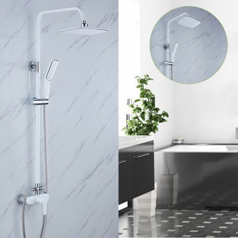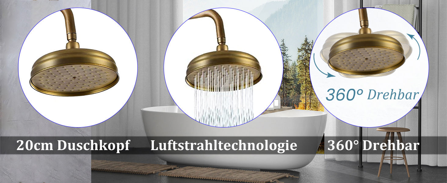 Wellness für dein Badezimmer! Dieses komplette Duschsystem von Trintion bringt Luxus in deine tägliche Dusche. Mit einer großen 20x20cm Regendusche mit 70 Düsen für ein sanftes Regenerlebnis und einer praktischen Handbrause für maximale Flexibilität. Beide Köpfe sind winkelverstellbar und mit verstopfungssicheren Gummidüsen ausgestattet. Das verchromte Material und die Messingstruktur sorgen für Langlebigkeit und Hochdruckbeständigkeit. Einfach zu installieren - die Duschhöhe lässt sich deinen Bedürfnissen anpassen. Perfekt für die Kombination mit vorhandenen Wannen-Duschmischbatterien. Einfach umschaltbar zwischen Regendusche und Handbrause - ideal für die ganze Familie!