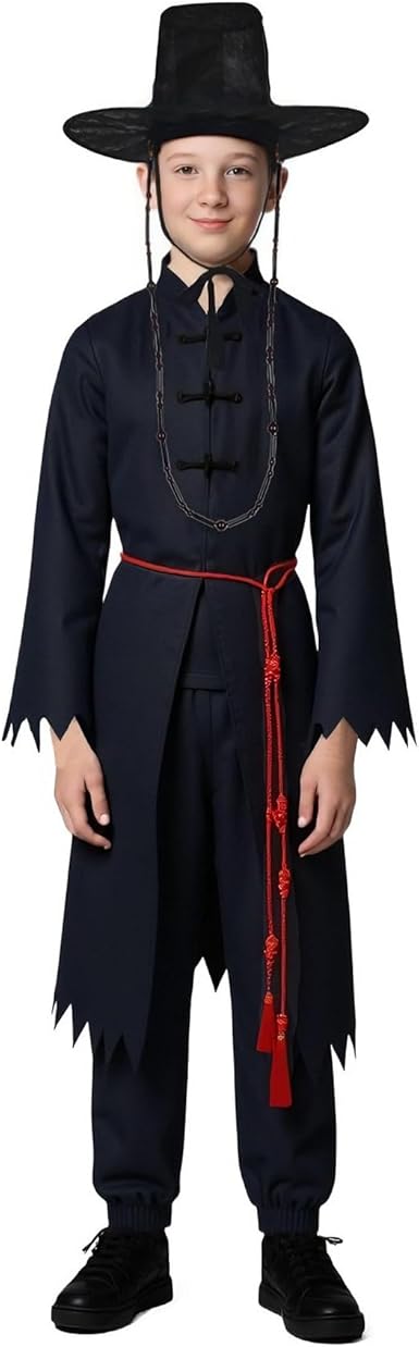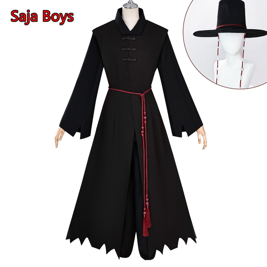 Wow, dieses Kpo-p Dämon Saja Kostüm ist der absolute Hit für kleine Anime-Fans! Das komplette Set enthält alles was man braucht: Mysteriösen schwarzen Umhang, Top, Hose, Hut, Taillenzubehör, Ringe, Armbänder und Ohrringe - einfach alles um den Charakter perfekt nachzuahmen.