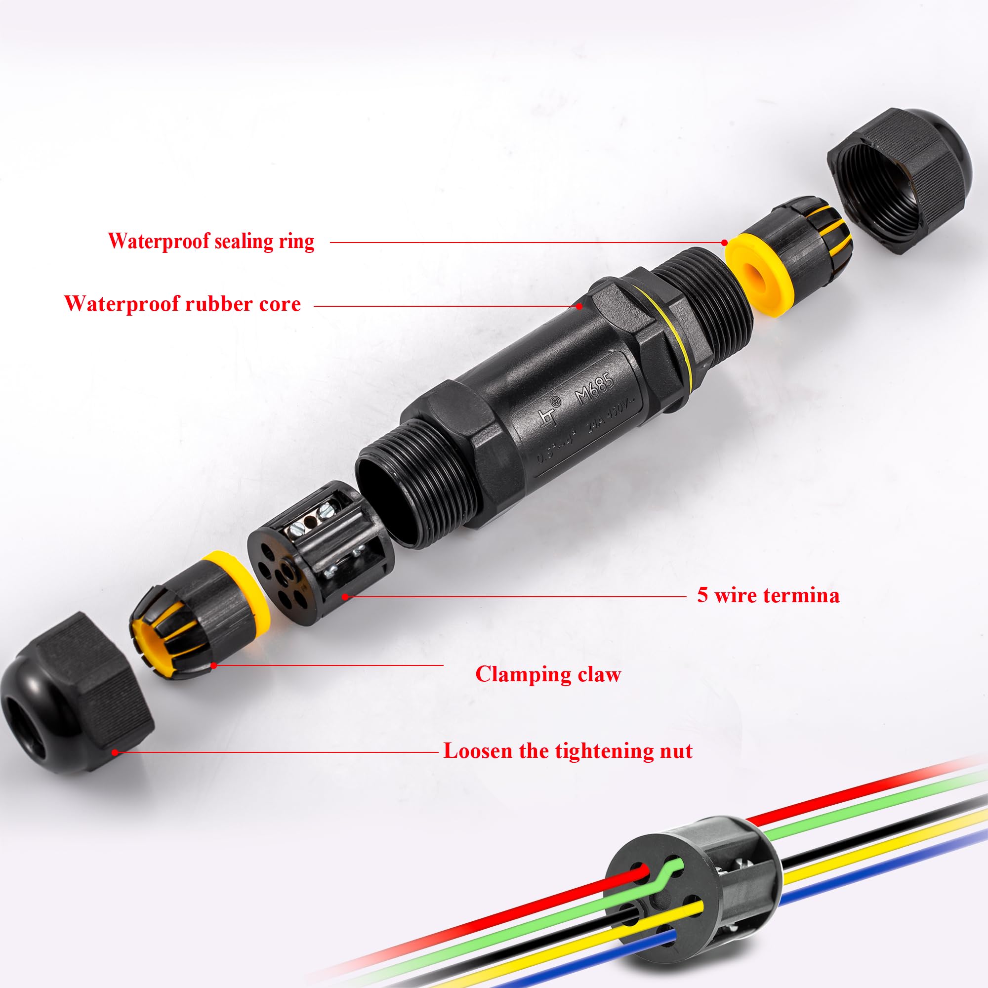 8 Stück Wasserdichte 5-polige Kabelverbinder IP68 - Push-in Klemmen Für Erdkabel 4-14mm
