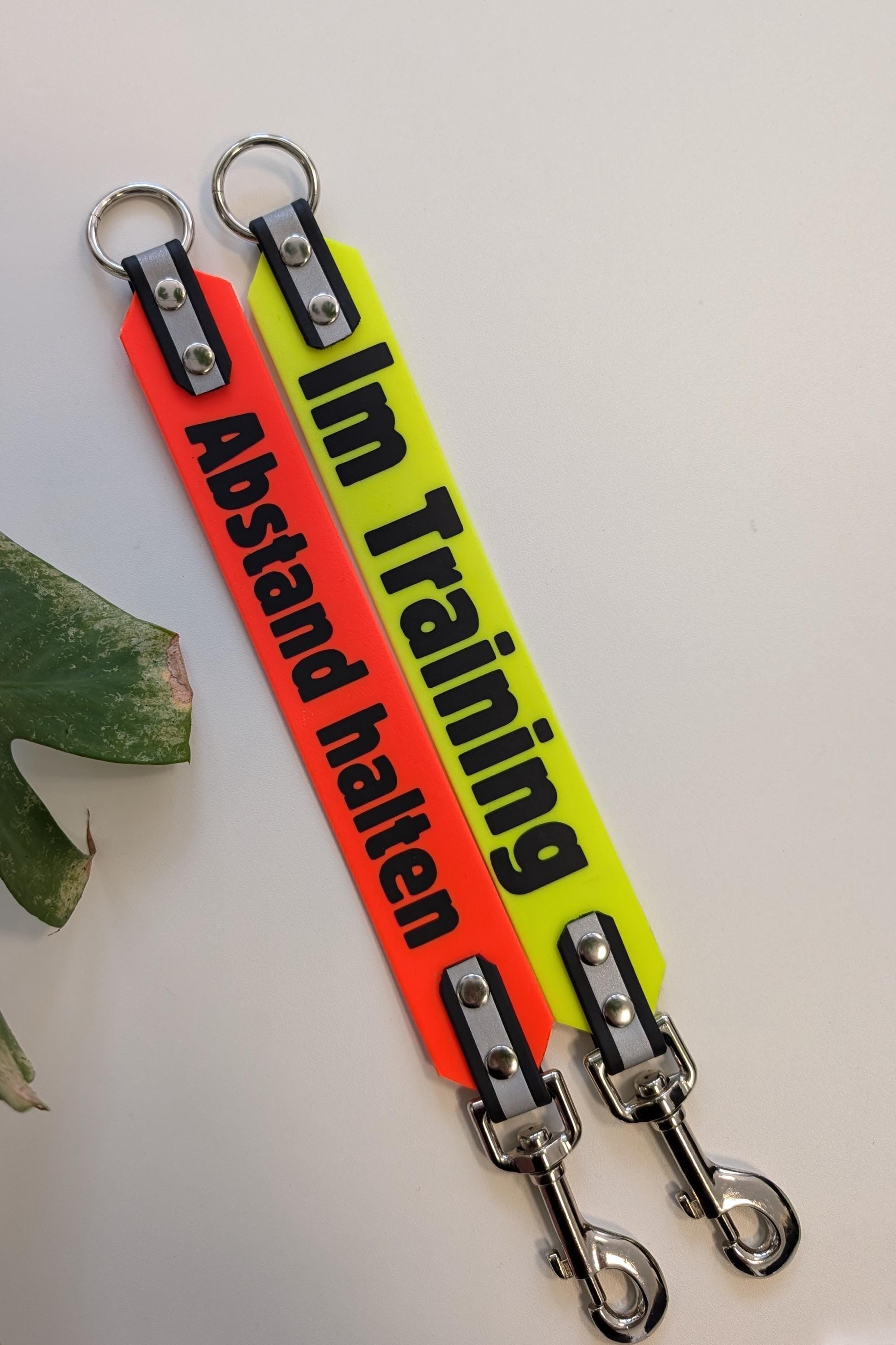 Einfach per Klettverschluss an der Leine befestigen - ohne Werkzeug, ohne Gefummel. In Sekunden ist sie montiert und signalisiert anderen: Bitte Abstand halten, wir trainieren gerade!