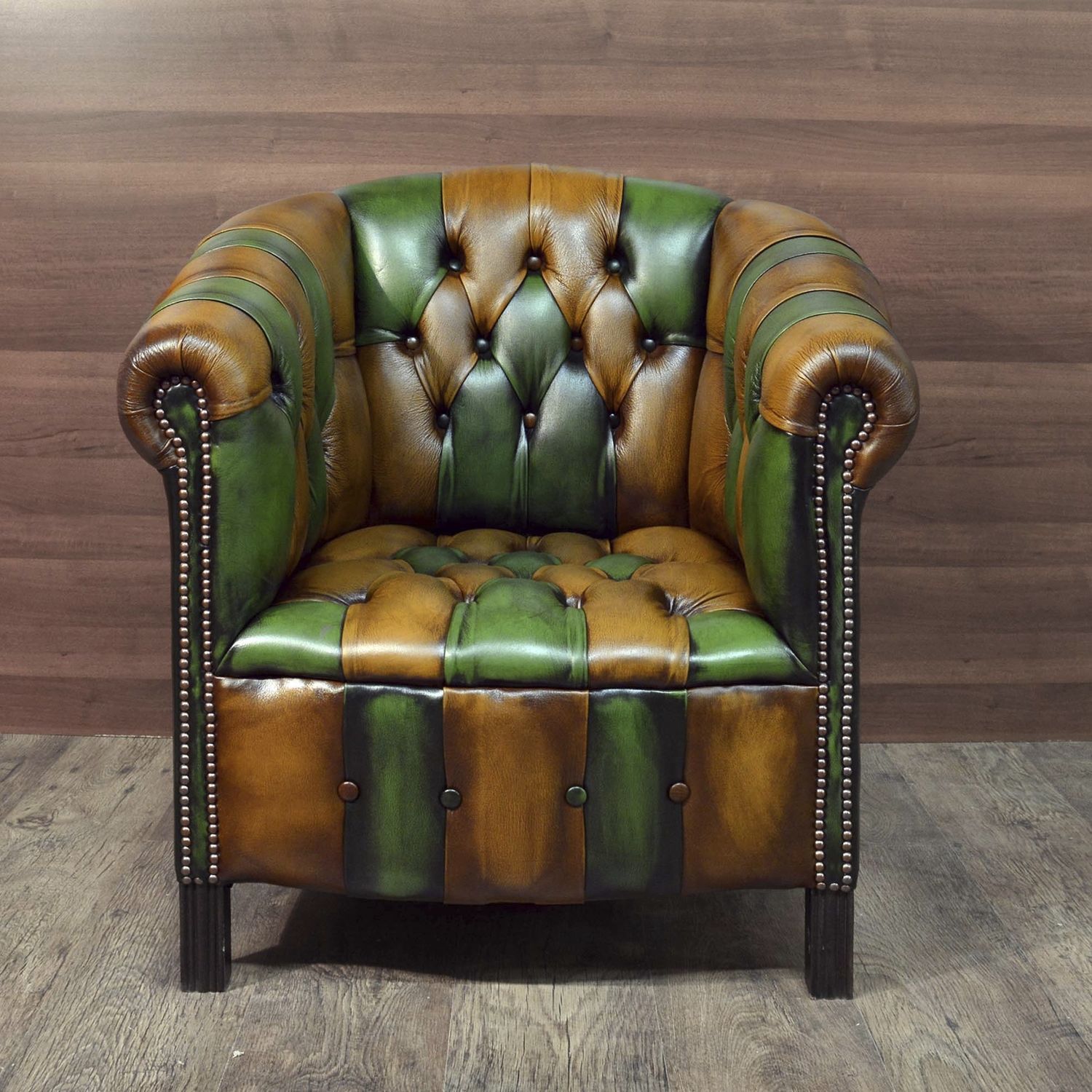 Fühl dich wie Sherlock Holmes in deinem eigenen Club! Dieser wunderschöne Chesterfield Sessel aus massivem Mahagoni-Holz bringt englischen Stil in dein Zuhause. Mit grünem Kunstleder bezogen und der typischen Knopfheftung - einfach nur edel! Maße: 104x74x60 cm (HxBxT), Sitzhöhe 40 cm. Handgefertigt, jedes Stück ein Unikat. Perfekt als Lesesessel, Kaminsessel oder fürs Arbeitszimmer. Trägt bis 110 kg. Ein Möbelstück für Liebhaber klassischer Eleganz und gediegener Atmosphäre. Ohne Deko geliefert. Ein Sessel, der nicht nur super bequem ist, sondern auch echten Stil verbreitet!