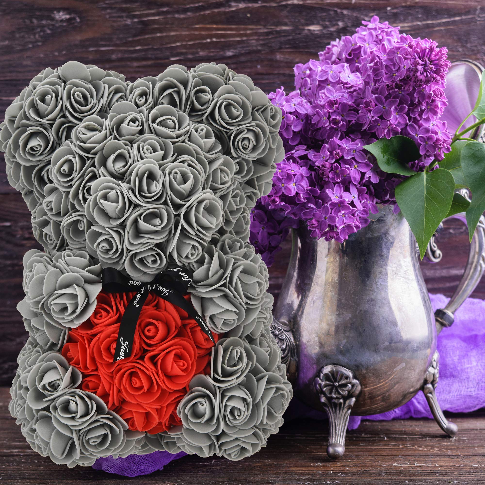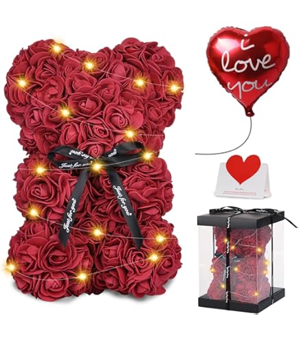 Ein echter Hingucker als Geschenk! Dieser süße Rosenbär ist komplett handgefertigt aus über 250 künstlichen Blüten und wird in einer stylischen klaren Geschenkbox geliefert. Mit 25cm Größe ist er perfekt als Geschenk für Verliebte, zum Muttertag, Geburtstag oder einfach als Überraschung für besondere Menschen. Die pinken Rosen verleihen ihm einen romantischen Touch und machen ihn zu einem echten Eyecatcher im Regal oder auf dem Nachttisch. Viel pflegeleichter als echte Blumen - dieser Bär behält seine Schönheit für immer! Einfach auspacken und Freude bereiten - mehr Romantik geht kaum!